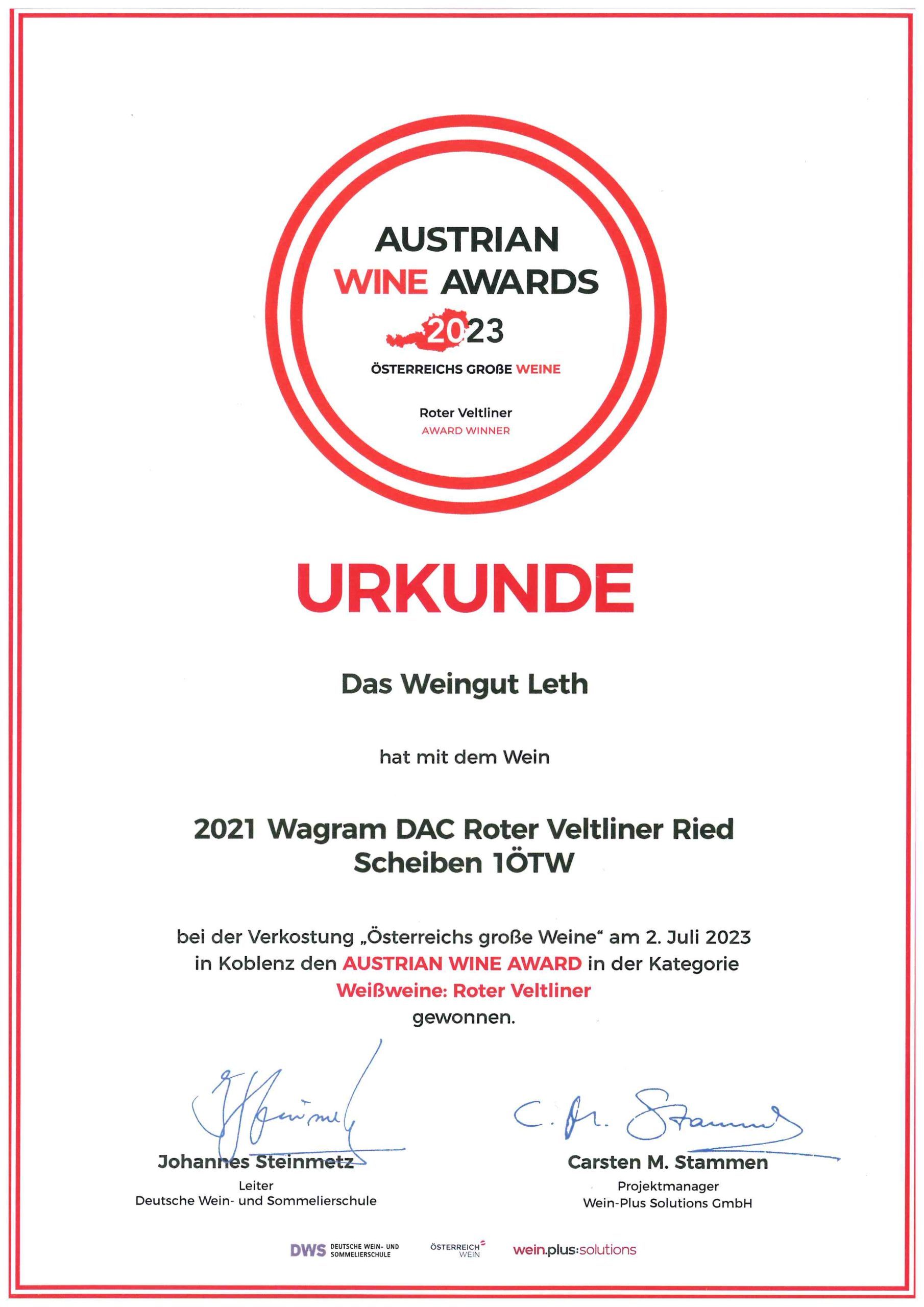 Austrian Wine Awards 2023 Roter Veltliner Ried Scheiben